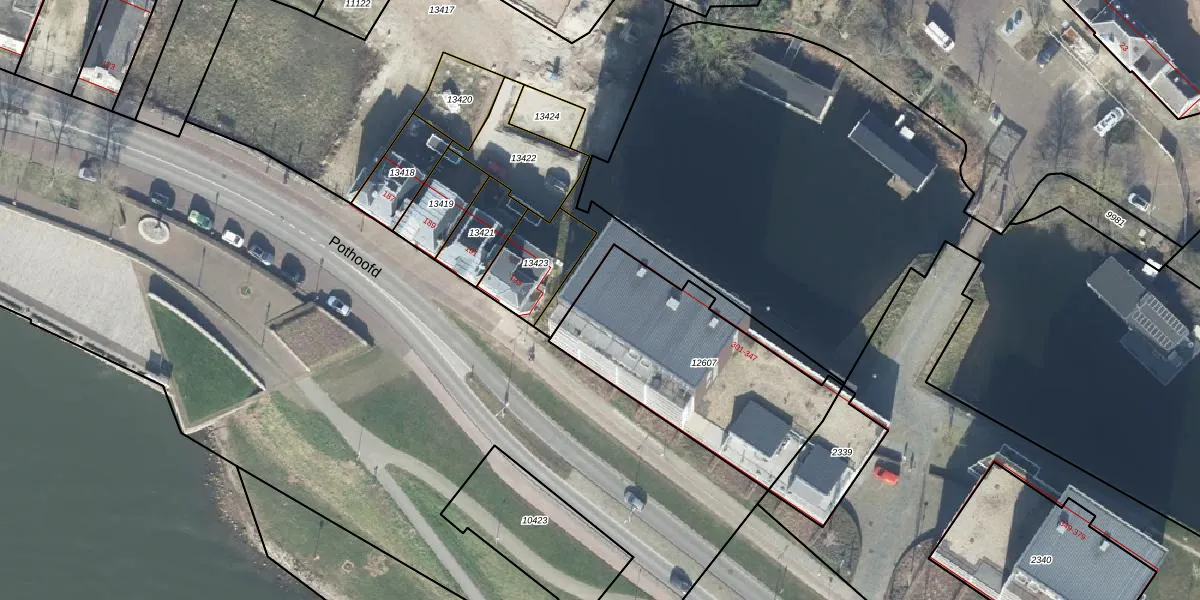 Pothoofd 305 is gelegen op kadastraal perceel DVT00E12607. Deze kadastrale aanduiding is uniek en wordt gebruikt door het Kadaster om eigendomsrechten en andere zakelijke rechten vast te leggen. Het perceel maakt onderdeel uit van de kadastrale gemeente Deventer.