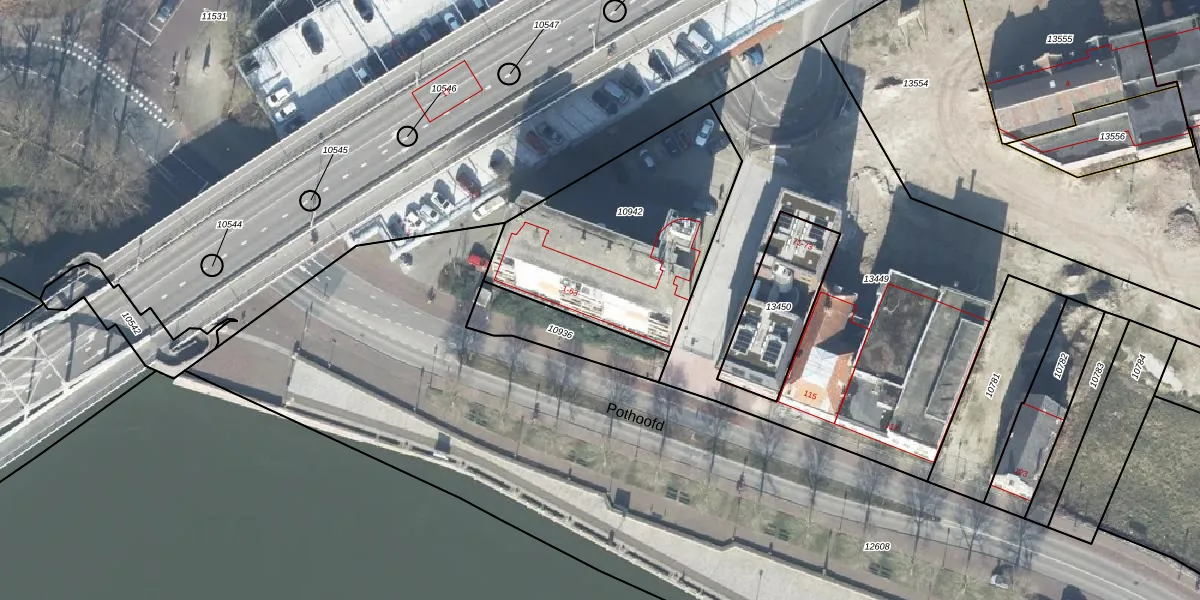 Het perceel waarop Pothoofd 51 staat heeft een oppervlakte van 958 m². Dit is een groot perceel. De perceeloppervlakte wordt geregistreerd door het Kadaster. Gedetailleerde informatie over de maten van dit perceel kunt u vinden in het rapport Kadastrale kaart met maatvoering van Pothoofd 51.