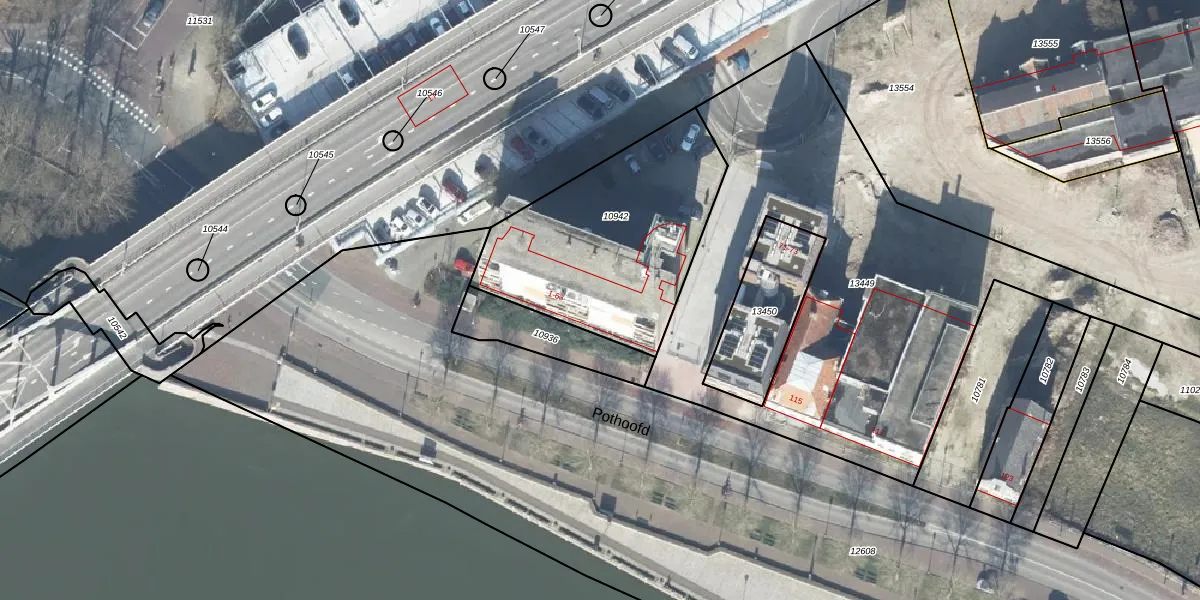 Het perceel waarop Pothoofd 61 staat heeft een oppervlakte van 958 m². Dit is een groot perceel. De perceeloppervlakte wordt geregistreerd door het Kadaster. Gedetailleerde informatie over de maten van dit perceel kunt u vinden in het rapport Kadastrale kaart met maatvoering van Pothoofd 61.