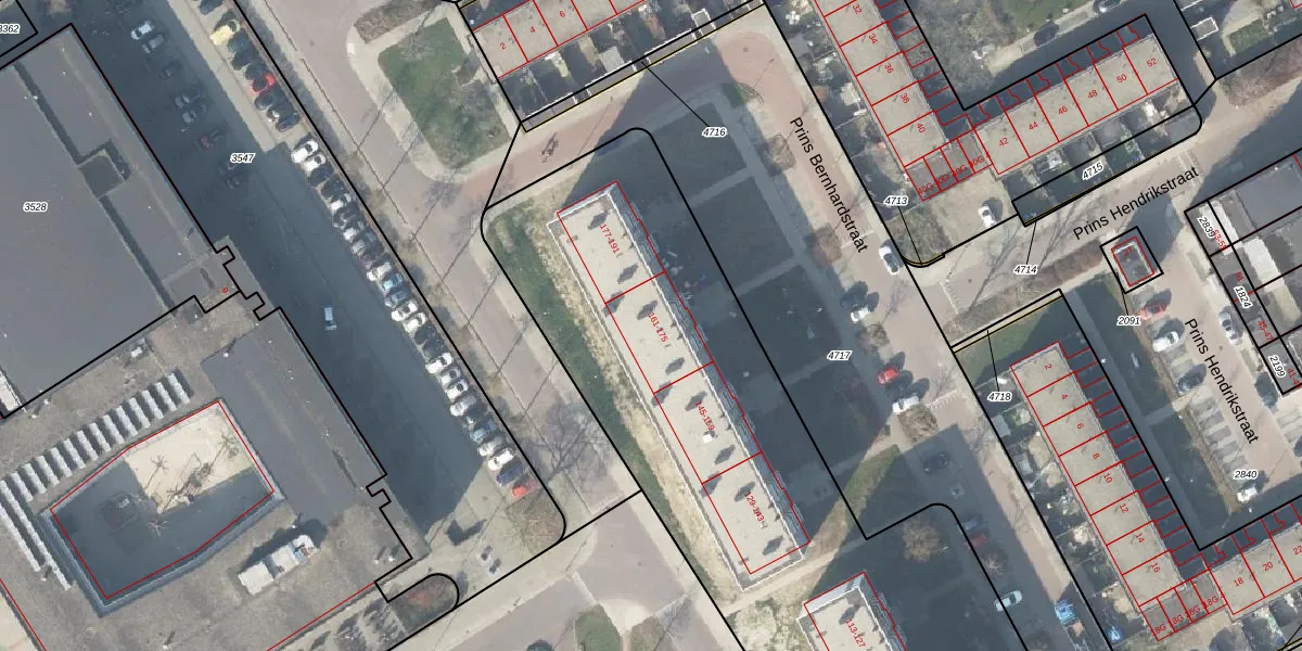 Het perceel waarop Prins Bernhardstraat 171 staat heeft een oppervlakte van 6830 m². Dit is een zeer groot perceel. De perceeloppervlakte wordt geregistreerd door het Kadaster. Gedetailleerde informatie over de maten van dit perceel kunt u vinden in het rapport Kadastrale kaart met maatvoering van Prins Bernhardstraat 171.