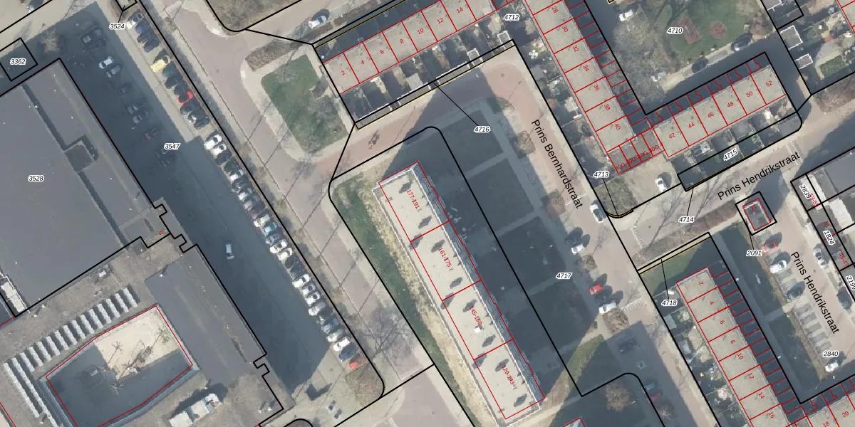 Het perceel waarop Prins Bernhardstraat 179 staat heeft een oppervlakte van 6830 m². Dit is een zeer groot perceel. De perceeloppervlakte wordt geregistreerd door het Kadaster. Gedetailleerde informatie over de maten van dit perceel kunt u vinden in het rapport Kadastrale kaart met maatvoering van Prins Bernhardstraat 179.