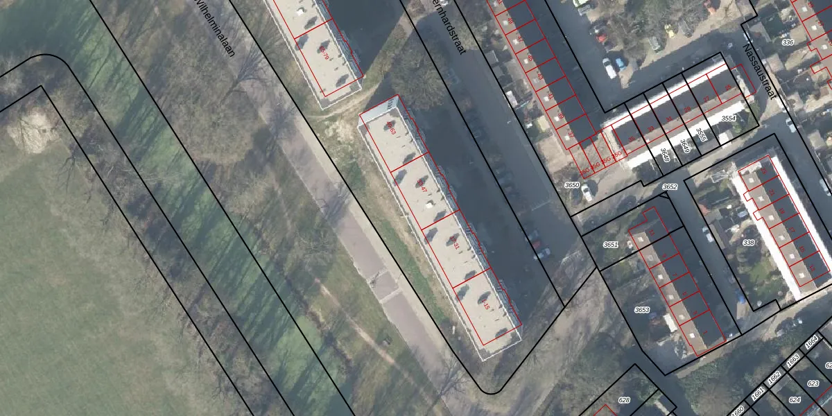 Het perceel waarop Prins Bernhardstraat 39 staat heeft een oppervlakte van 6830 m². Dit is een zeer groot perceel. De perceeloppervlakte wordt geregistreerd door het Kadaster. Gedetailleerde informatie over de maten van dit perceel kunt u vinden in het rapport Kadastrale kaart met maatvoering van Prins Bernhardstraat 39.