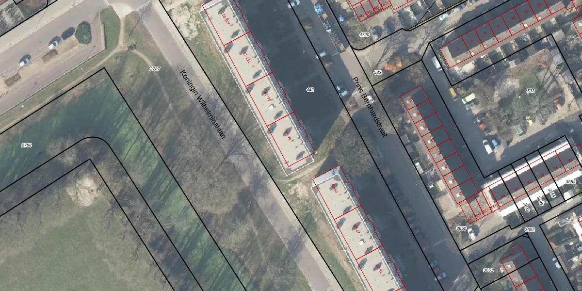 Het perceel waarop Prins Bernhardstraat 69 staat heeft een oppervlakte van 6830 m². Dit is een zeer groot perceel. De perceeloppervlakte wordt geregistreerd door het Kadaster. Gedetailleerde informatie over de maten van dit perceel kunt u vinden in het rapport Kadastrale kaart met maatvoering van Prins Bernhardstraat 69.