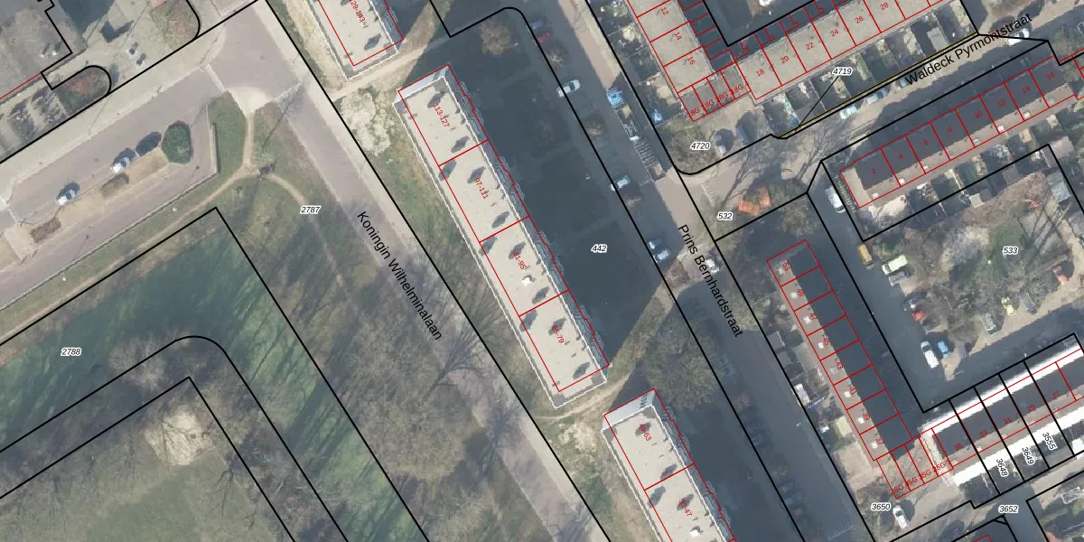 Het perceel waarop Prins Bernhardstraat 83 staat heeft een oppervlakte van 6830 m². Dit is een zeer groot perceel. De perceeloppervlakte wordt geregistreerd door het Kadaster. Gedetailleerde informatie over de maten van dit perceel kunt u vinden in het rapport Kadastrale kaart met maatvoering van Prins Bernhardstraat 83.