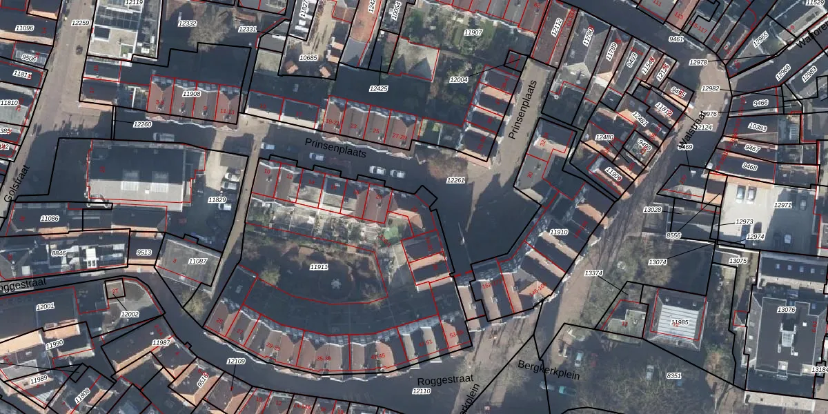 Het perceel waarop Prinsenplaats 22 staat heeft een oppervlakte van 2445 m². Dit is een zeer groot perceel. De perceeloppervlakte wordt geregistreerd door het Kadaster. Gedetailleerde informatie over de maten van dit perceel kunt u vinden in het rapport Kadastrale kaart met maatvoering van Prinsenplaats 22.