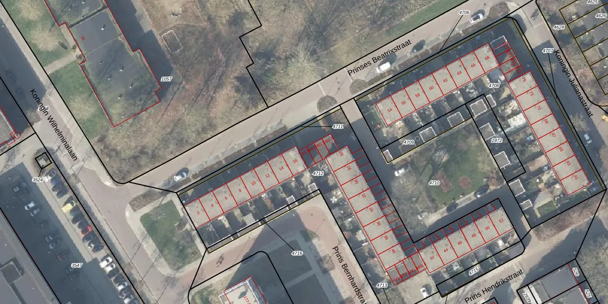 Het perceel waarop Prinses Beatrixstraat 16-G-1 staat heeft een oppervlakte van 2634 m². Dit is een zeer groot perceel. De perceeloppervlakte wordt geregistreerd door het Kadaster. Gedetailleerde informatie over de maten van dit perceel kunt u vinden in het rapport Kadastrale kaart met maatvoering van Prinses Beatrixstraat 16-G-1.