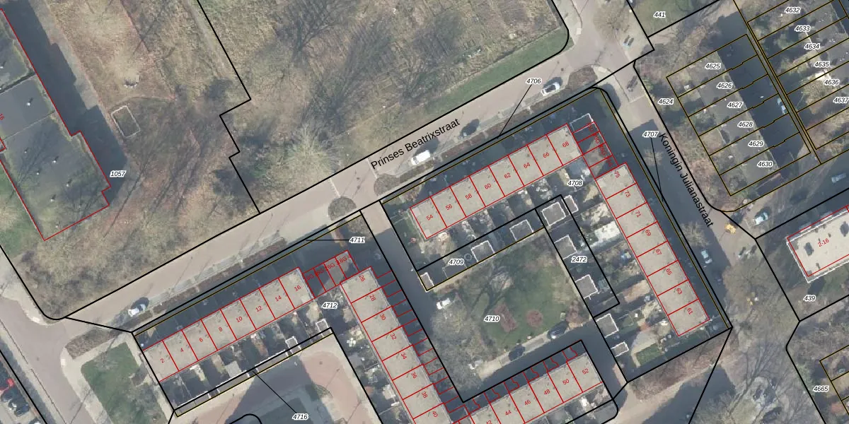 Het perceel waarop Prinses Beatrixstraat 54 staat heeft een oppervlakte van 2097 m². Dit is een zeer groot perceel. De perceeloppervlakte wordt geregistreerd door het Kadaster. Gedetailleerde informatie over de maten van dit perceel kunt u vinden in het rapport Kadastrale kaart met maatvoering van Prinses Beatrixstraat 54.