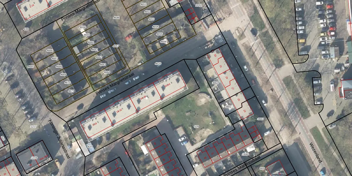 Het perceel waarop Prinses Margrietstraat 64 staat heeft een oppervlakte van 1595 m². Dit is een zeer groot perceel. De perceeloppervlakte wordt geregistreerd door het Kadaster. Gedetailleerde informatie over de maten van dit perceel kunt u vinden in het rapport Kadastrale kaart met maatvoering van Prinses Margrietstraat 64.
