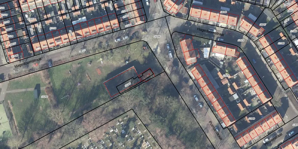 Gebruik de zoekbalk of klik op een perceel voor informatie over de adressen binnen dit perceel.