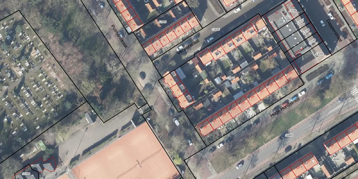 Het perceel waarop Putmanstraat 4 staat heeft een oppervlakte van 3079 m². Dit is een zeer groot perceel. De perceeloppervlakte wordt geregistreerd door het Kadaster. Gedetailleerde informatie over de maten van dit perceel kunt u vinden in het rapport Kadastrale kaart met maatvoering van Putmanstraat 4.
