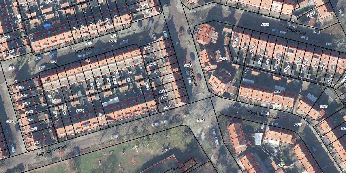 Gebruik de zoekbalk of klik op een perceel voor informatie over de adressen binnen dit perceel.