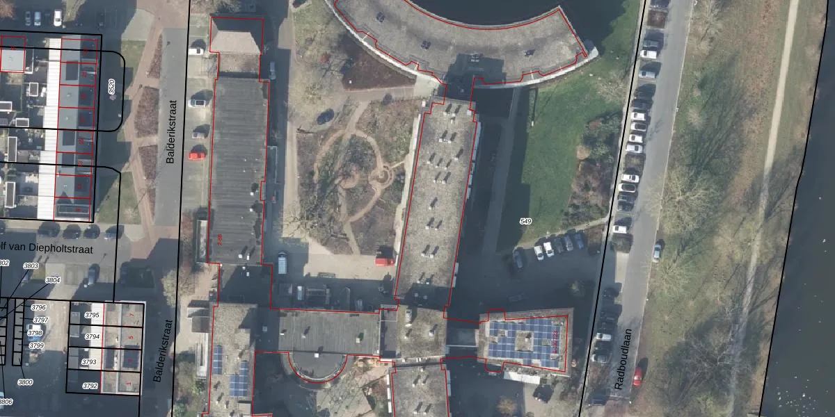Het perceel waarop Radboudlaan 1-K-059 staat heeft een oppervlakte van 1,8 ha. Dit is een zeer groot perceel. De perceeloppervlakte wordt geregistreerd door het Kadaster. Gedetailleerde informatie over de maten van dit perceel kunt u vinden in het rapport Kadastrale kaart met maatvoering van Radboudlaan 1-K-059.