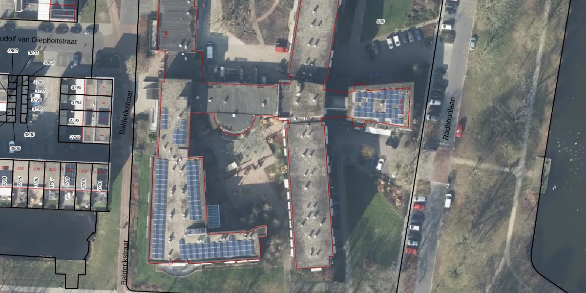Het perceel waarop Radboudlaan 1-K-063 staat heeft een oppervlakte van 1,8 ha. Dit is een zeer groot perceel. De perceeloppervlakte wordt geregistreerd door het Kadaster. Gedetailleerde informatie over de maten van dit perceel kunt u vinden in het rapport Kadastrale kaart met maatvoering van Radboudlaan 1-K-063.