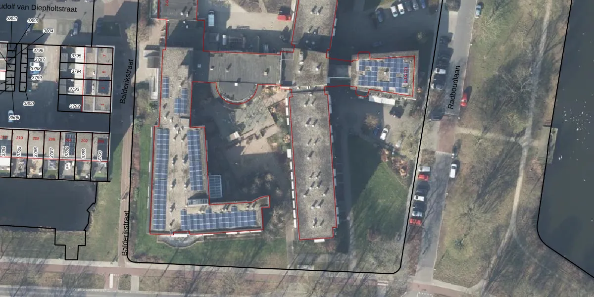 Het perceel waarop Radboudlaan 1-K-066 staat heeft een oppervlakte van 1,8 ha. Dit is een zeer groot perceel. De perceeloppervlakte wordt geregistreerd door het Kadaster. Gedetailleerde informatie over de maten van dit perceel kunt u vinden in het rapport Kadastrale kaart met maatvoering van Radboudlaan 1-K-066.