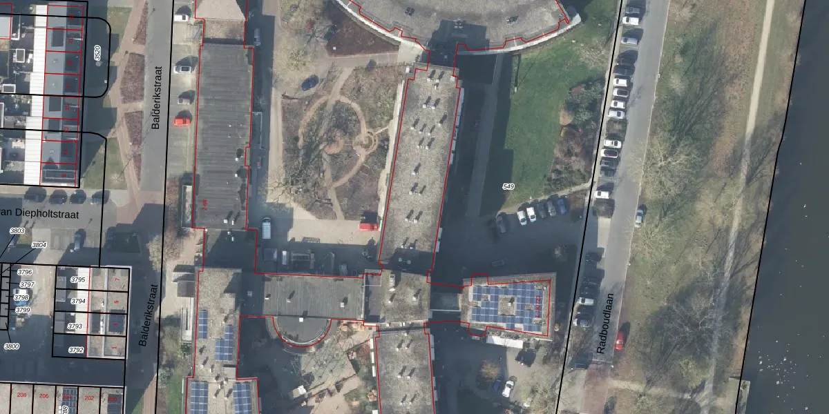 Het perceel waarop Radboudlaan 1-K-252 staat heeft een oppervlakte van 1,8 ha. Dit is een zeer groot perceel. De perceeloppervlakte wordt geregistreerd door het Kadaster. Gedetailleerde informatie over de maten van dit perceel kunt u vinden in het rapport Kadastrale kaart met maatvoering van Radboudlaan 1-K-252.