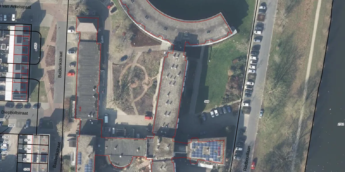 Het perceel waarop Radboudlaan 1-K-256 staat heeft een oppervlakte van 1,8 ha. Dit is een zeer groot perceel. De perceeloppervlakte wordt geregistreerd door het Kadaster. Gedetailleerde informatie over de maten van dit perceel kunt u vinden in het rapport Kadastrale kaart met maatvoering van Radboudlaan 1-K-256.