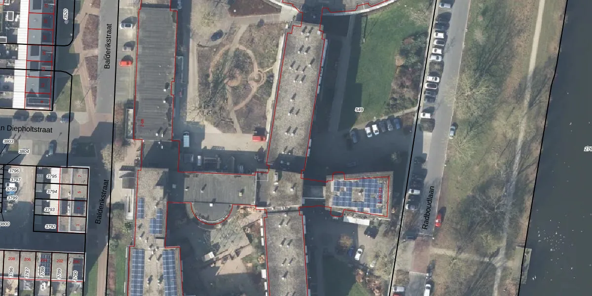 Het perceel waarop Radboudlaan 1-K-350 staat heeft een oppervlakte van 1,8 ha. Dit is een zeer groot perceel. De perceeloppervlakte wordt geregistreerd door het Kadaster. Gedetailleerde informatie over de maten van dit perceel kunt u vinden in het rapport Kadastrale kaart met maatvoering van Radboudlaan 1-K-350.