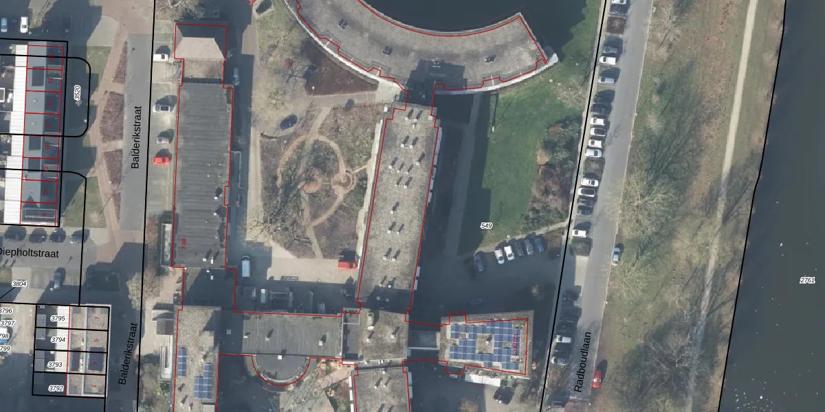 Het perceel waarop Radboudlaan 1-K-355 staat heeft een oppervlakte van 1,8 ha. Dit is een zeer groot perceel. De perceeloppervlakte wordt geregistreerd door het Kadaster. Gedetailleerde informatie over de maten van dit perceel kunt u vinden in het rapport Kadastrale kaart met maatvoering van Radboudlaan 1-K-355.