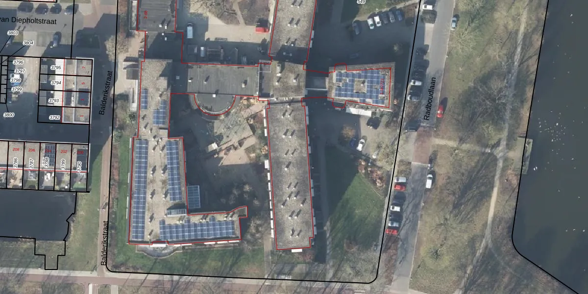 Het perceel waarop Radboudlaan 1-K-365 staat heeft een oppervlakte van 1,8 ha. Dit is een zeer groot perceel. De perceeloppervlakte wordt geregistreerd door het Kadaster. Gedetailleerde informatie over de maten van dit perceel kunt u vinden in het rapport Kadastrale kaart met maatvoering van Radboudlaan 1-K-365.