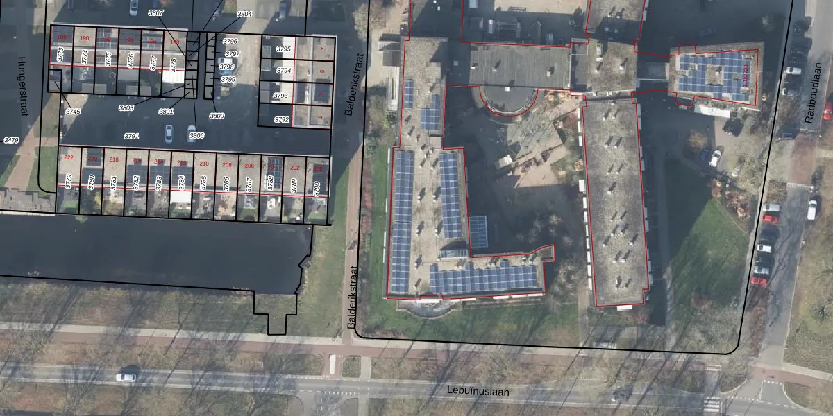 Het perceel waarop Radboudlaan 1-K-611 staat heeft een oppervlakte van 1,8 ha. Dit is een zeer groot perceel. De perceeloppervlakte wordt geregistreerd door het Kadaster. Gedetailleerde informatie over de maten van dit perceel kunt u vinden in het rapport Kadastrale kaart met maatvoering van Radboudlaan 1-K-611.
