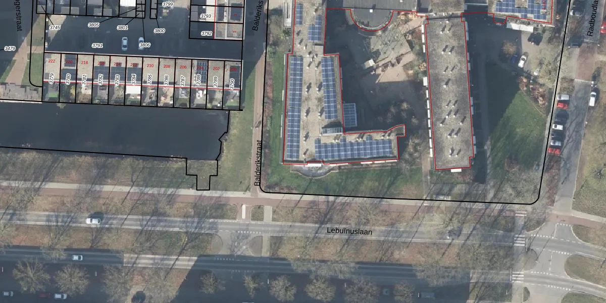 Het perceel waarop Radboudlaan 1-K-623 staat heeft een oppervlakte van 1,8 ha. Dit is een zeer groot perceel. De perceeloppervlakte wordt geregistreerd door het Kadaster. Gedetailleerde informatie over de maten van dit perceel kunt u vinden in het rapport Kadastrale kaart met maatvoering van Radboudlaan 1-K-623.