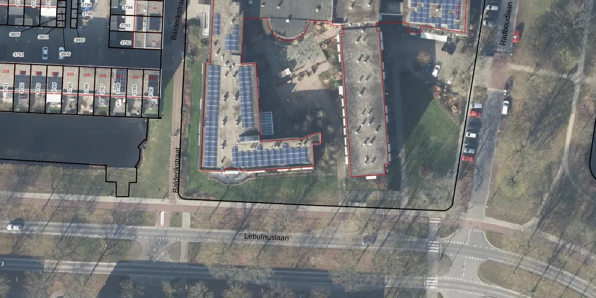 Het perceel waarop Radboudlaan 1-K-716 staat heeft een oppervlakte van 1,8 ha. Dit is een zeer groot perceel. De perceeloppervlakte wordt geregistreerd door het Kadaster. Gedetailleerde informatie over de maten van dit perceel kunt u vinden in het rapport Kadastrale kaart met maatvoering van Radboudlaan 1-K-716.