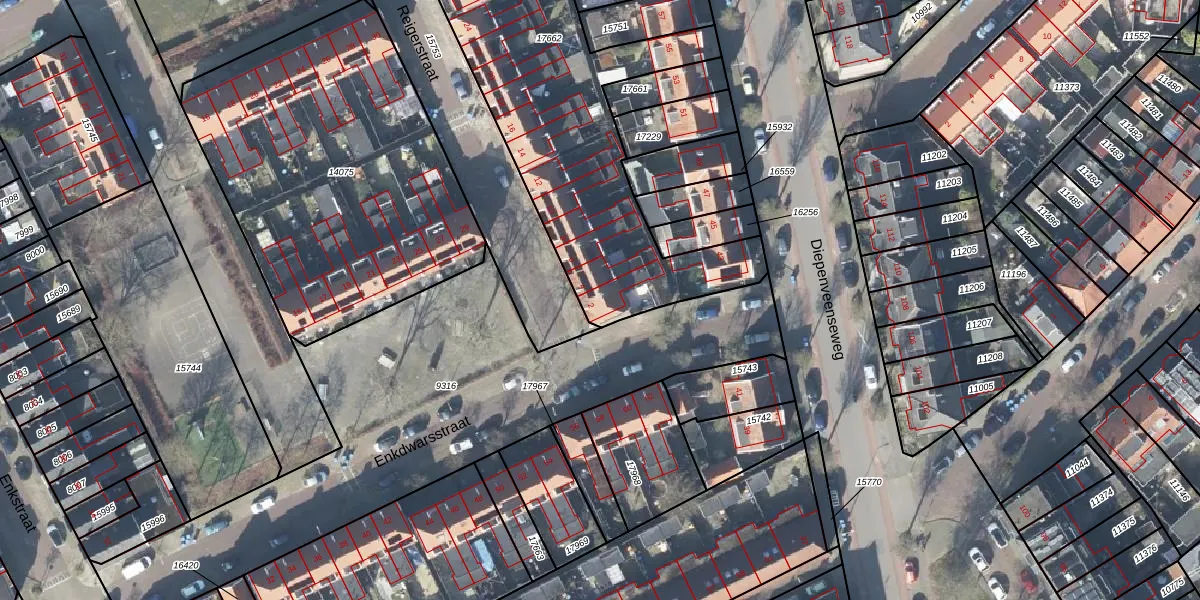 Het perceel waarop Reigerstraat 2 staat heeft een oppervlakte van 1955 m². Dit is een zeer groot perceel. De perceeloppervlakte wordt geregistreerd door het Kadaster. Gedetailleerde informatie over de maten van dit perceel kunt u vinden in het rapport Kadastrale kaart met maatvoering van Reigerstraat 2.