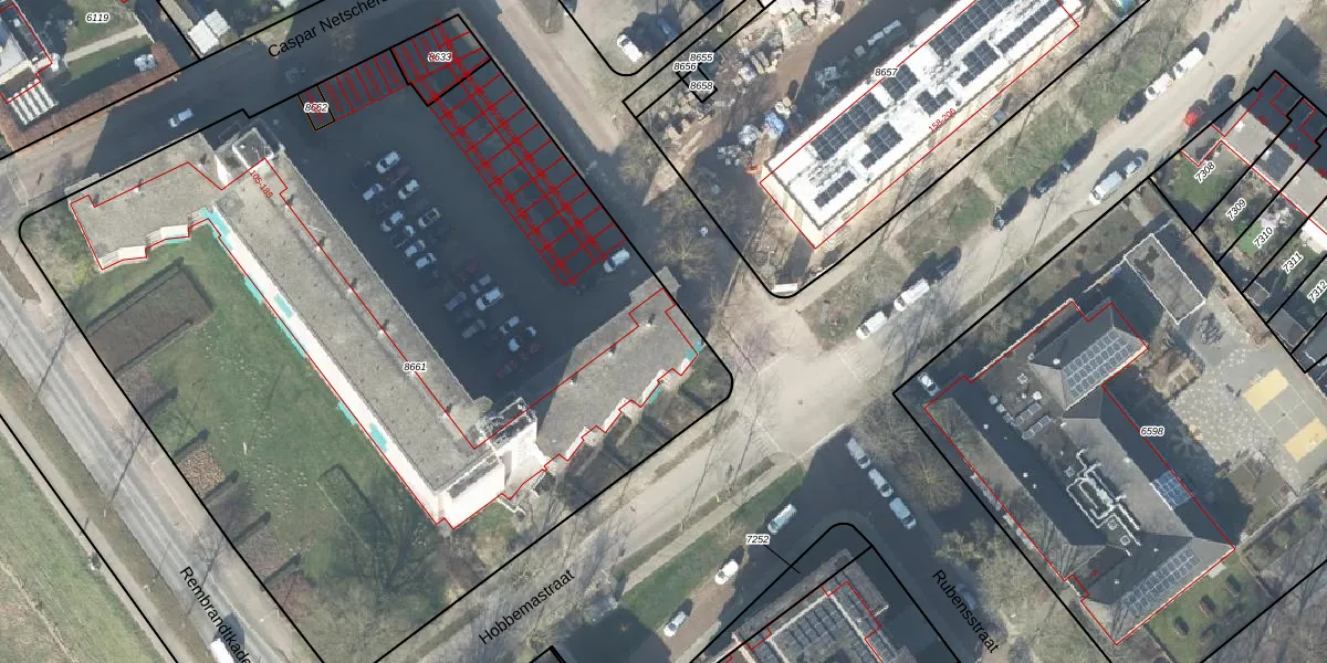 Het perceel waarop Rembrandtkade 159 staat heeft een oppervlakte van 5734 m². Dit is een zeer groot perceel. De perceeloppervlakte wordt geregistreerd door het Kadaster. Gedetailleerde informatie over de maten van dit perceel kunt u vinden in het rapport Kadastrale kaart met maatvoering van Rembrandtkade 159.
