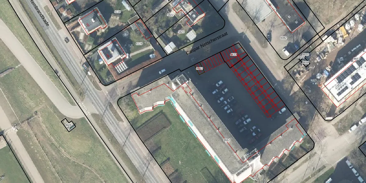 Het perceel waarop Rembrandtkade 173 staat heeft een oppervlakte van 5734 m². Dit is een zeer groot perceel. De perceeloppervlakte wordt geregistreerd door het Kadaster. Gedetailleerde informatie over de maten van dit perceel kunt u vinden in het rapport Kadastrale kaart met maatvoering van Rembrandtkade 173.
