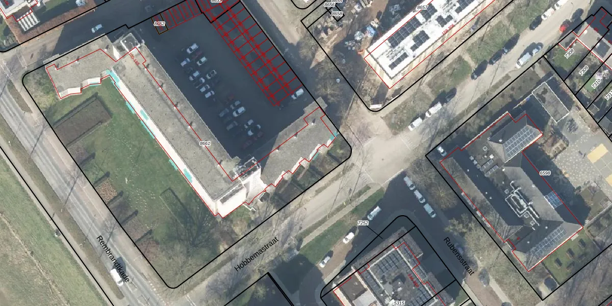 Het perceel waarop Rembrandtkade 184 staat heeft een oppervlakte van 5734 m². Dit is een zeer groot perceel. De perceeloppervlakte wordt geregistreerd door het Kadaster. Gedetailleerde informatie over de maten van dit perceel kunt u vinden in het rapport Kadastrale kaart met maatvoering van Rembrandtkade 184.