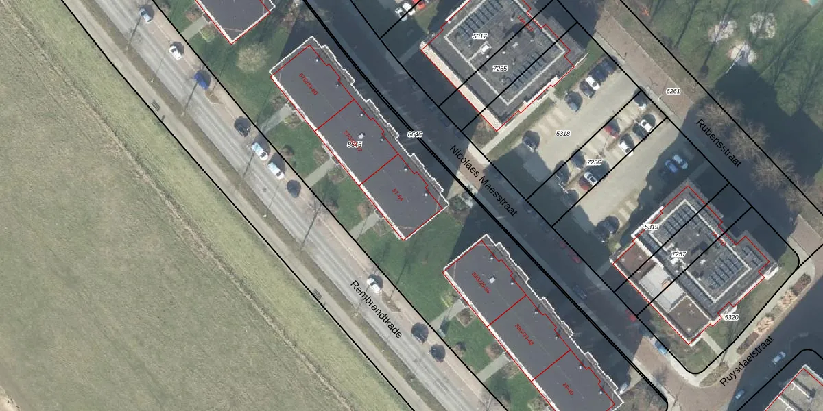 Het perceel waarop Rembrandtkade 59 staat heeft een oppervlakte van 5734 m². Dit is een zeer groot perceel. De perceeloppervlakte wordt geregistreerd door het Kadaster. Gedetailleerde informatie over de maten van dit perceel kunt u vinden in het rapport Kadastrale kaart met maatvoering van Rembrandtkade 59.