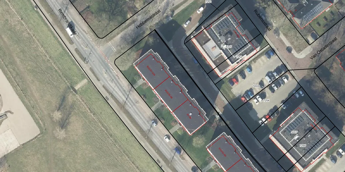 Het perceel waarop Rembrandtkade 93 staat heeft een oppervlakte van 5734 m². Dit is een zeer groot perceel. De perceeloppervlakte wordt geregistreerd door het Kadaster. Gedetailleerde informatie over de maten van dit perceel kunt u vinden in het rapport Kadastrale kaart met maatvoering van Rembrandtkade 93.