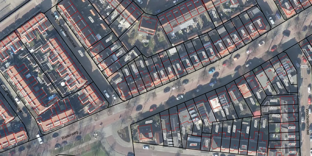 Gebruik de zoekbalk of klik op een perceel voor informatie over de adressen binnen dit perceel.