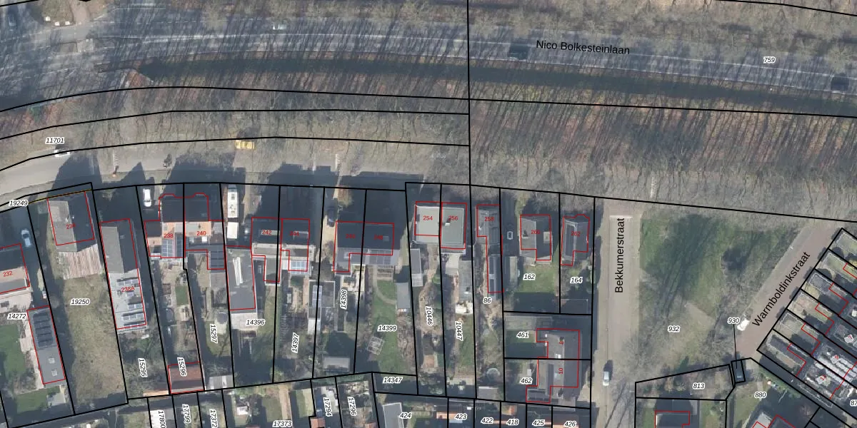 Gebruik de zoekbalk of klik op een perceel voor informatie over de adressen binnen dit perceel.