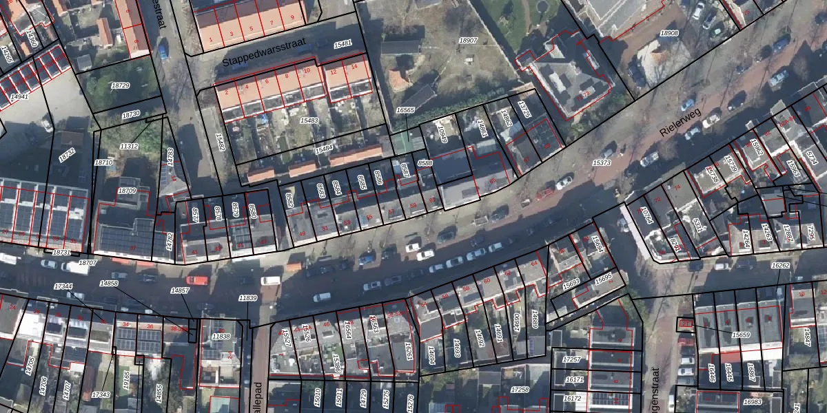 Gebruik de zoekbalk of klik op een perceel voor informatie over de adressen binnen dit perceel.