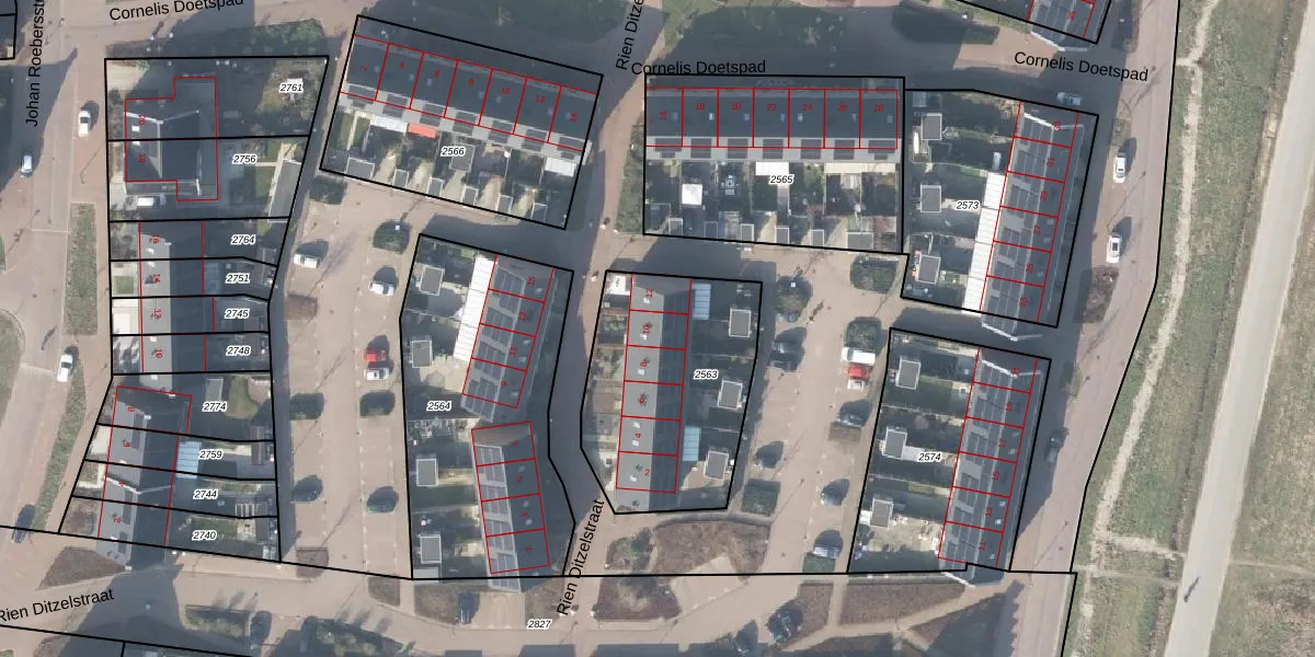 Rien Ditzelstraat 10 is gelegen op kadastraal perceel DPV00B2563. Deze kadastrale aanduiding is uniek en wordt gebruikt door het Kadaster om eigendomsrechten en andere zakelijke rechten vast te leggen. Het perceel maakt onderdeel uit van de kadastrale gemeente Diepenveen.