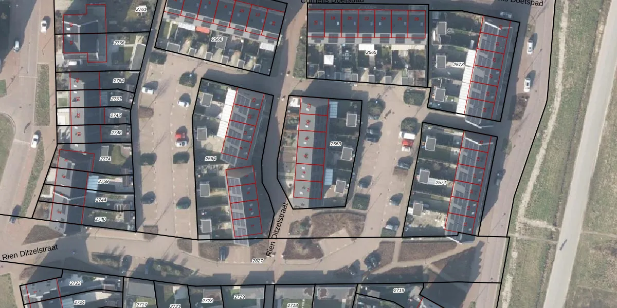 Het perceel waarop Rien Ditzelstraat 6 staat heeft een oppervlakte van 839 m². Dit is een groot perceel. De perceeloppervlakte wordt geregistreerd door het Kadaster. Gedetailleerde informatie over de maten van dit perceel kunt u vinden in het rapport Kadastrale kaart met maatvoering van Rien Ditzelstraat 6.