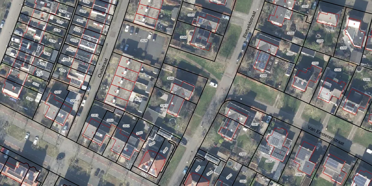 Gebruik de zoekbalk of klik op een perceel voor informatie over de adressen binnen dit perceel.