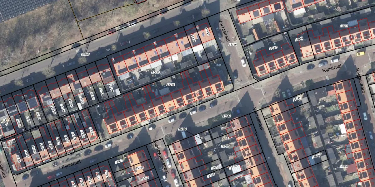 Het perceel waarop Rijnstraat 37 staat heeft een oppervlakte van 1510 m². Dit is een zeer groot perceel. De perceeloppervlakte wordt geregistreerd door het Kadaster. Gedetailleerde informatie over de maten van dit perceel kunt u vinden in het rapport Kadastrale kaart met maatvoering van Rijnstraat 37.