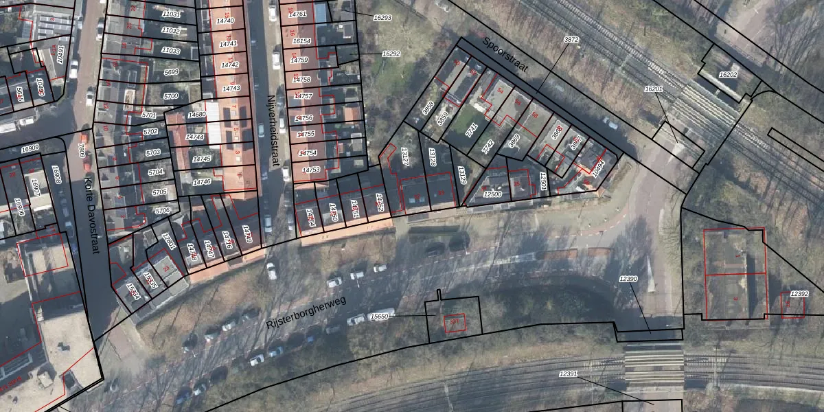 Gebruik de zoekbalk of klik op een perceel voor informatie over de adressen binnen dit perceel.