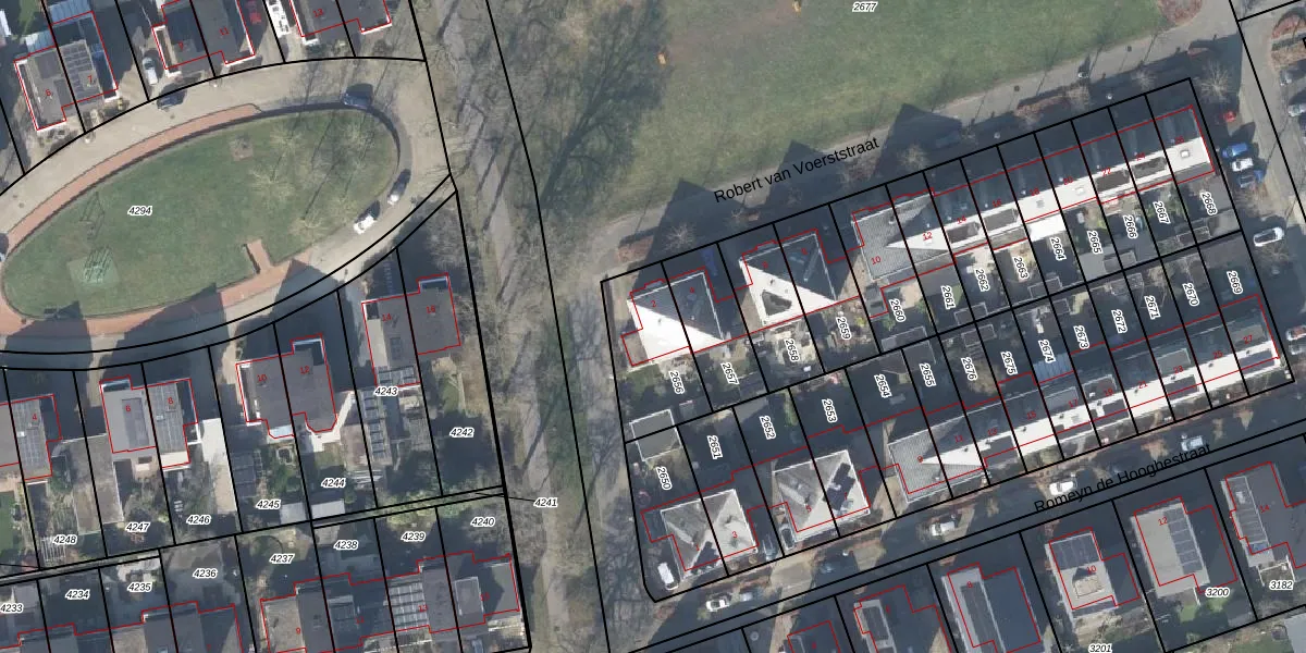 Het perceel waarop Robert van Voerststraat 2 staat heeft een oppervlakte van 295 m². Dit is een middelgroot perceel. De perceeloppervlakte wordt geregistreerd door het Kadaster. Gedetailleerde informatie over de maten van dit perceel kunt u vinden in het rapport Kadastrale kaart met maatvoering van Robert van Voerststraat 2.