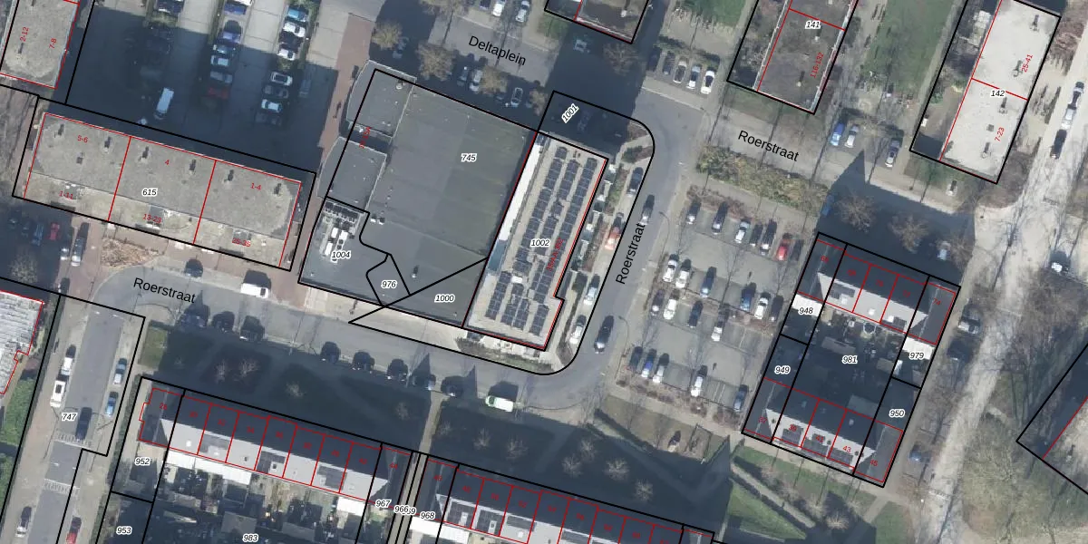 Het perceel waarop Roerstraat 35-E staat heeft een oppervlakte van 547 m². Dit is een groot perceel. De perceeloppervlakte wordt geregistreerd door het Kadaster. Gedetailleerde informatie over de maten van dit perceel kunt u vinden in het rapport Kadastrale kaart met maatvoering van Roerstraat 35-E.