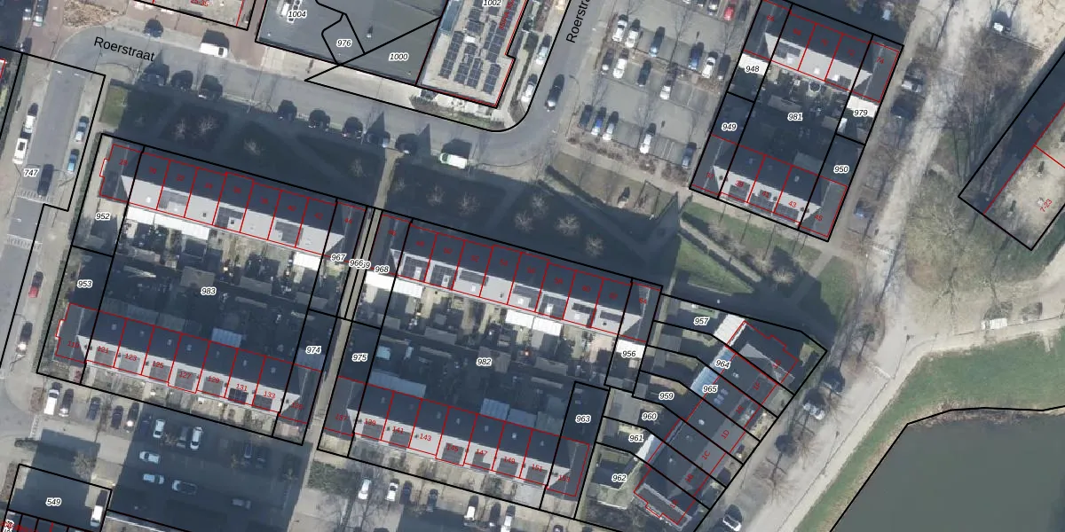 Het perceel waarop Roerstraat 56 staat heeft een oppervlakte van 1877 m². Dit is een zeer groot perceel. De perceeloppervlakte wordt geregistreerd door het Kadaster. Gedetailleerde informatie over de maten van dit perceel kunt u vinden in het rapport Kadastrale kaart met maatvoering van Roerstraat 56.