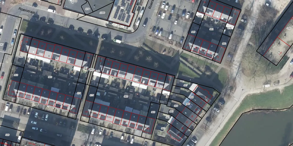 Het perceel waarop Roerstraat 58 staat heeft een oppervlakte van 1877 m². Dit is een zeer groot perceel. De perceeloppervlakte wordt geregistreerd door het Kadaster. Gedetailleerde informatie over de maten van dit perceel kunt u vinden in het rapport Kadastrale kaart met maatvoering van Roerstraat 58.