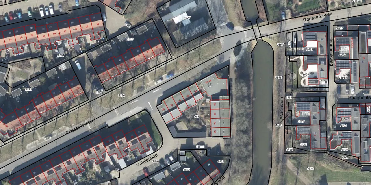 Het perceel waarop Roessinksweg 36 staat heeft een oppervlakte van 1065 m². Dit is een zeer groot perceel. De perceeloppervlakte wordt geregistreerd door het Kadaster. Gedetailleerde informatie over de maten van dit perceel kunt u vinden in het rapport Kadastrale kaart met maatvoering van Roessinksweg 36.