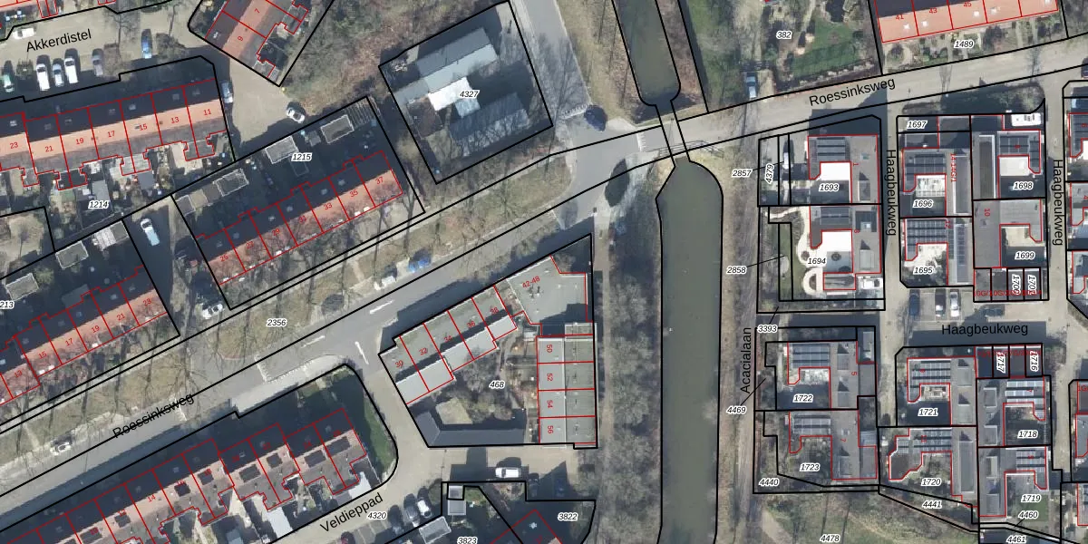 Het perceel waarop Roessinksweg 42 staat heeft een oppervlakte van 1065 m². Dit is een zeer groot perceel. De perceeloppervlakte wordt geregistreerd door het Kadaster. Gedetailleerde informatie over de maten van dit perceel kunt u vinden in het rapport Kadastrale kaart met maatvoering van Roessinksweg 42.