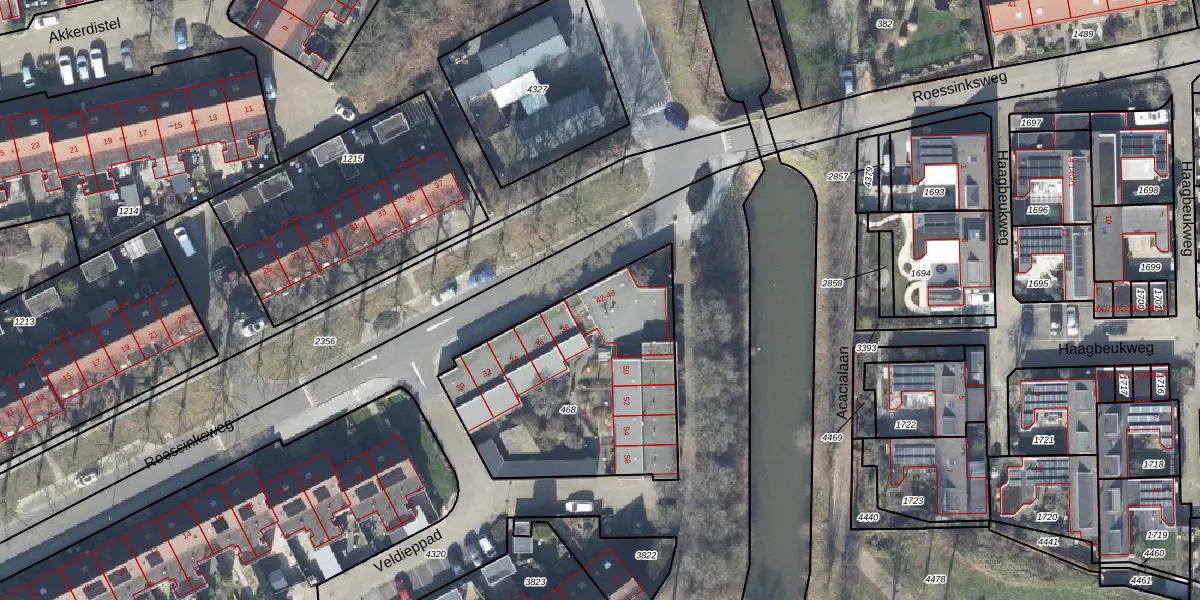 Het perceel waarop Roessinksweg 48 staat heeft een oppervlakte van 1065 m². Dit is een zeer groot perceel. De perceeloppervlakte wordt geregistreerd door het Kadaster. Gedetailleerde informatie over de maten van dit perceel kunt u vinden in het rapport Kadastrale kaart met maatvoering van Roessinksweg 48.