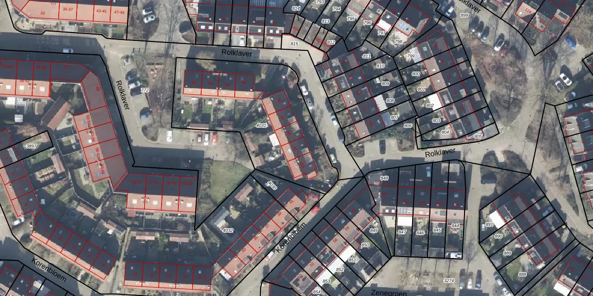Het perceel waarop Rolklaver 98 staat heeft een oppervlakte van 1480 m². Dit is een zeer groot perceel. De perceeloppervlakte wordt geregistreerd door het Kadaster. Gedetailleerde informatie over de maten van dit perceel kunt u vinden in het rapport Kadastrale kaart met maatvoering van Rolklaver 98.