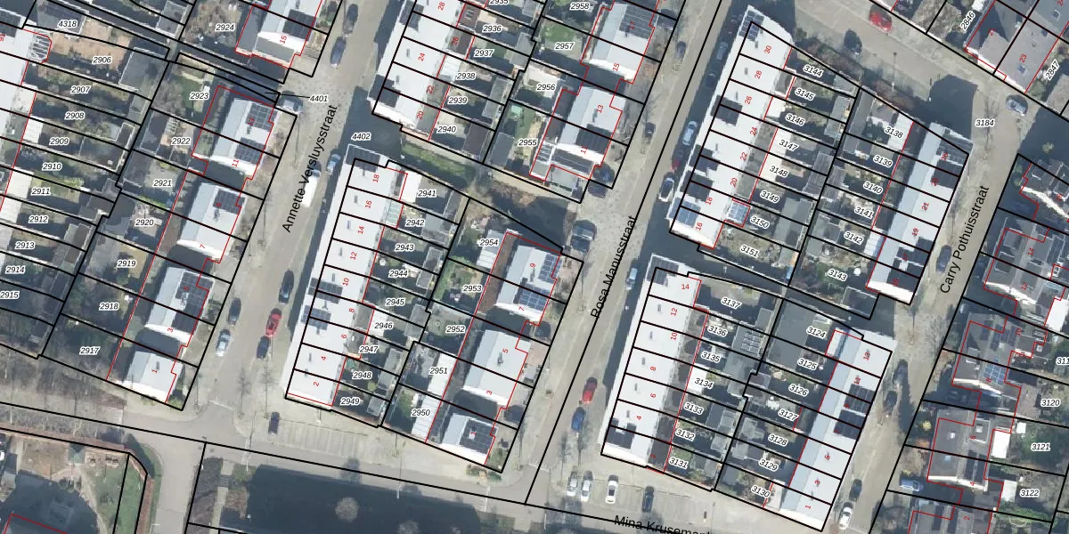 Rosa Manusstraat 9 is gelegen op kadastraal perceel DVT00M2954. Deze kadastrale aanduiding is uniek en wordt gebruikt door het Kadaster om eigendomsrechten en andere zakelijke rechten vast te leggen. Het perceel maakt onderdeel uit van de kadastrale gemeente Deventer.
