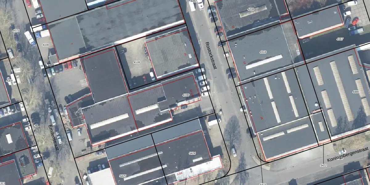 Het perceel waarop Rostockstraat 12 staat heeft een oppervlakte van 3080 m². Dit is een zeer groot perceel. De perceeloppervlakte wordt geregistreerd door het Kadaster. Gedetailleerde informatie over de maten van dit perceel kunt u vinden in het rapport Kadastrale kaart met maatvoering van Rostockstraat 12.